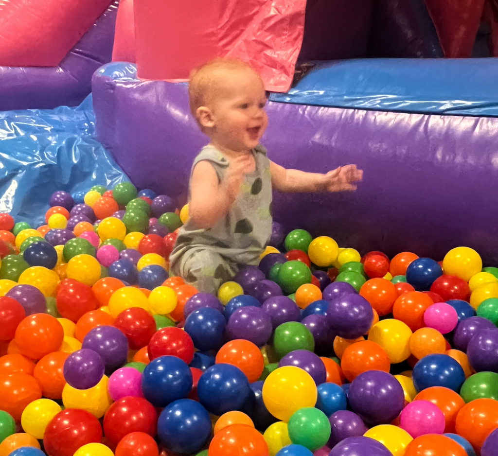 There are three inflatables and one baby/toddler area. I took my wildly adventurous 1-year-old down the inflatables a few times before he realized he could do it himself. If you haven’t tried to climb one of those with a 25-pound baby, you should be prepared that it’s a lot more difficult that doing it alone.